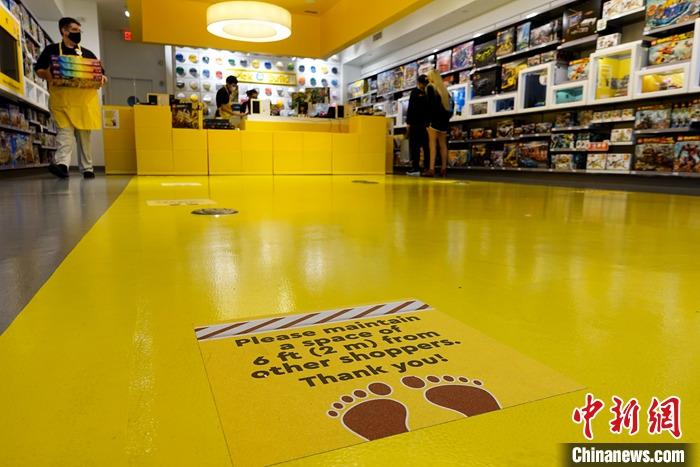 当地时间8月24日,美国纽约州长岛的一家儿童玩具连锁商店,针对疫情采取限制措施,同时只有五名顾客在店内购物。随着纽约州疫情好转,长岛等地区室内商业活动逐步开放。 中新社记者 廖攀 摄