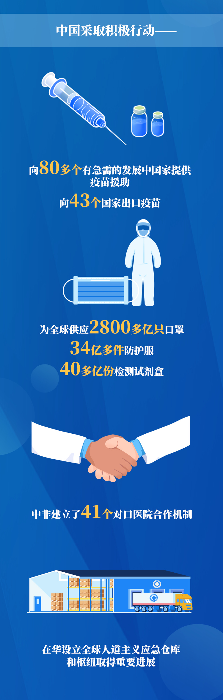 一年来,疫情反复,病毒变异,形势依然复杂严峻,国际社会急切期待更多的信心、希望和合作。习近平主席心系苍生,胸怀世界,领导开展新中国历史上规模最大的全球人道行动,为全球抗疫贡献中国智慧和力量,用实际行动践行人类卫生健康共同体理念,得到国际社会高度肯定和积极响应。