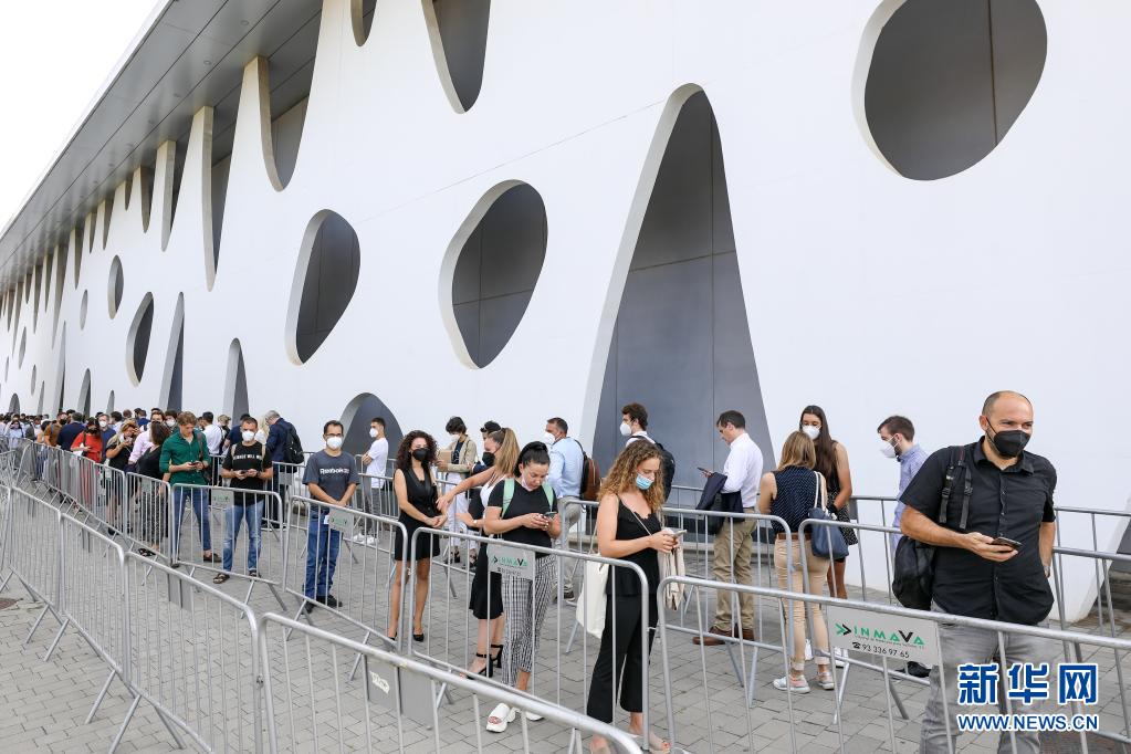 6月28日,在西班牙巴塞罗那,人们排队准备进入世界移动通信大会的新冠病毒检测中心。新华社记者 张铖 摄