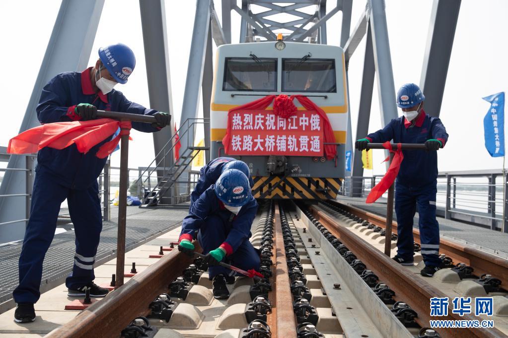 中俄首座跨江铁路大桥铺轨贯通