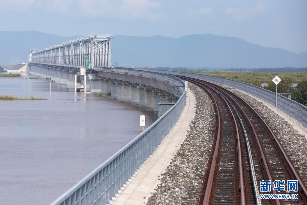 8月17日,同江中俄黑龙江铁路大桥实现铺轨贯通。新华社记者 张涛 摄