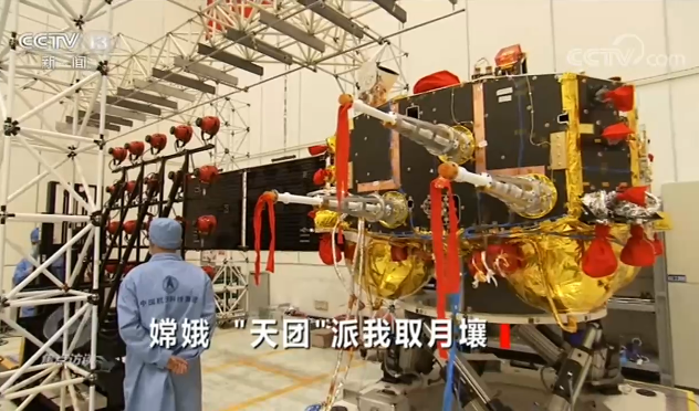 航天科技集团五院、嫦娥五号探测器副总设计师彭兢说:“这个探测器四部分,从下往上,从跟火箭对接的部分开始算,分别是轨道器,上面一点在轨道器肚子里面有一个返回器,然后是着陆器,最顶上是上升器。”