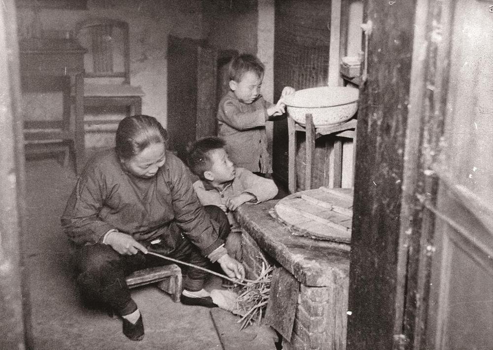 解放初期居民在家中生火做饭(资料片)