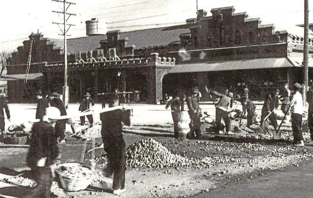 解放初期工人修缮火车站站前广场(资料片)