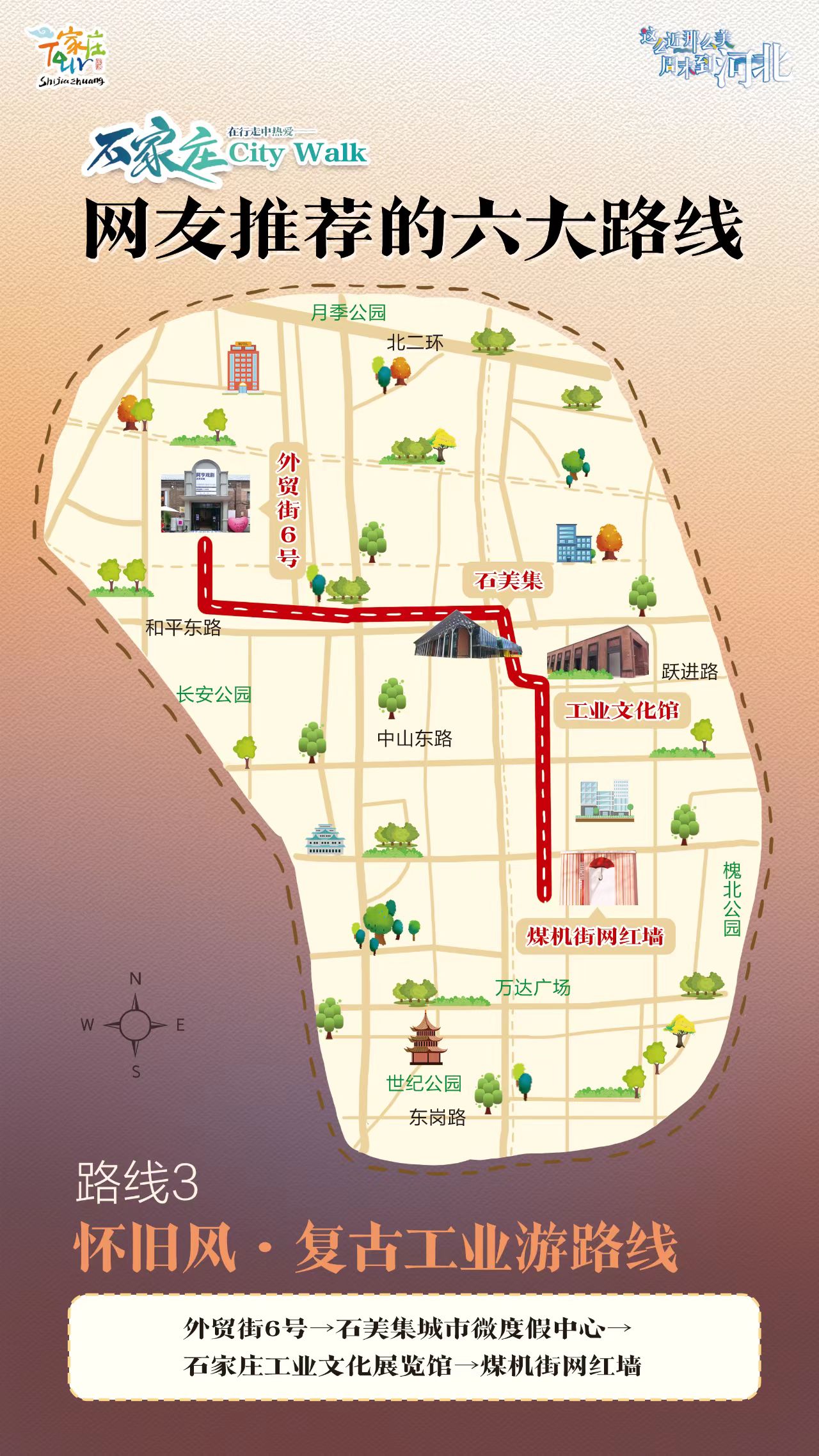 外贸街6号→石美集城市微度假中心→石家庄工业文化展览馆→煤机街网红墙