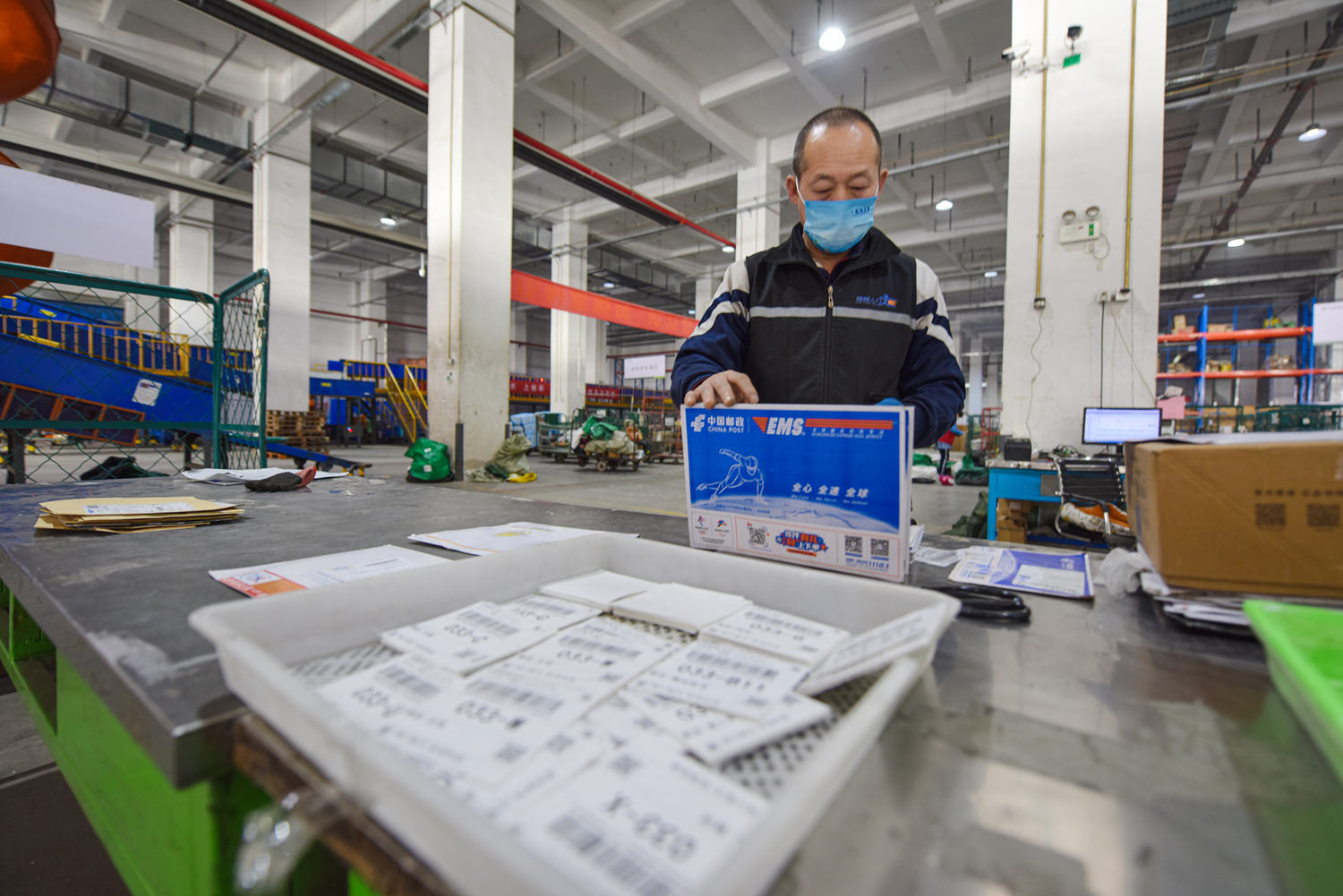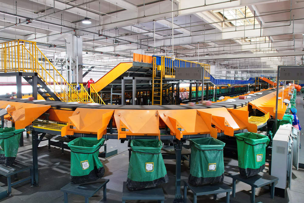 中国邮政环渤海邮件集散中心,自动化设备将邮件分类。