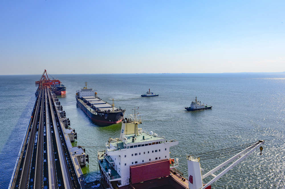 河北港口集团秦皇岛港正在离泊的煤炭船舶。