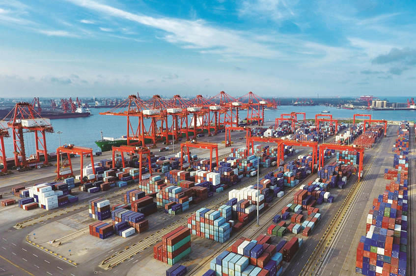 河北港口集团唐山港京唐港区集装箱码头。