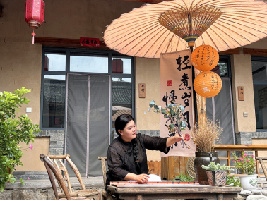 如今的听风院,窗台上挤满了多肉植物,木凳旁摆放着盛满花豆的笸箩,捡来的陶罐里,种植着各式各样的花花草草。院落一隅,木桌、木凳围作茶台,石头垒成烤炉。一把油纸伞下,“轻煮岁月慢煮茶”的惬意生活跃然和美乡村画卷中。