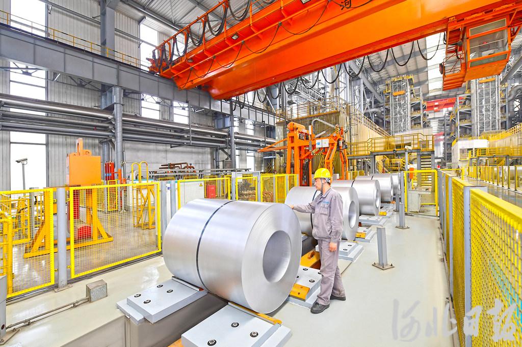 河钢集团唐钢公司通过工艺优化不断推出绿色低碳新产品。这是10月9日,唐钢高强汽车板有限公司职工在检查镀铝板外观质量。