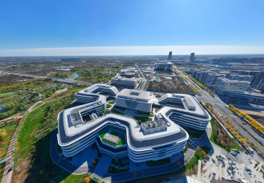 在雄安新区悦容公园旁,一座被称为“雄安之眼”的建筑,巧妙地把自然和城市联结在一起,这就是雄安城市计算中心。