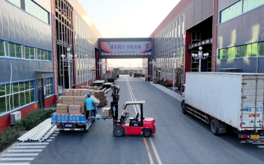 在东汪镇,工人正在装车,准备发货。