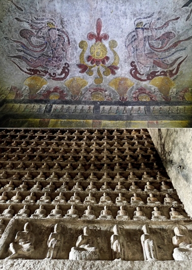 下图:南响堂石窟千佛洞一角。