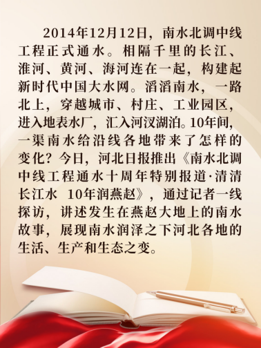 南水北调中线工程通水十周年特别报道 | 清清长江水 10年润燕赵