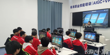 邢台技师学院学生在精准职业技能培训室参加职业技能培训。