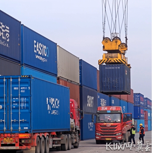 石家庄国际陆港场站内,集装箱堆得满满当当。