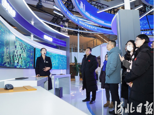 12月12日,采访团在雄安新区中国电信智慧城市产业园参观。