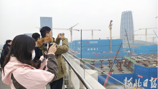 正观新闻副总编辑王长善请同伴在这里为他拍下一张照片,在他的身后,“金芦苇”(中国中化大厦)和“生命之树”(航站楼主要承重结构)已经显露身形。“在这里似乎真能听到拔节生长的声音,从出生就代表着中国城市建设前沿的未来之城,正在阔步前行。”王长善赞叹。