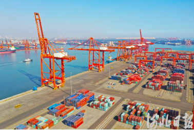 图为唐山港京唐港区集装箱码头。