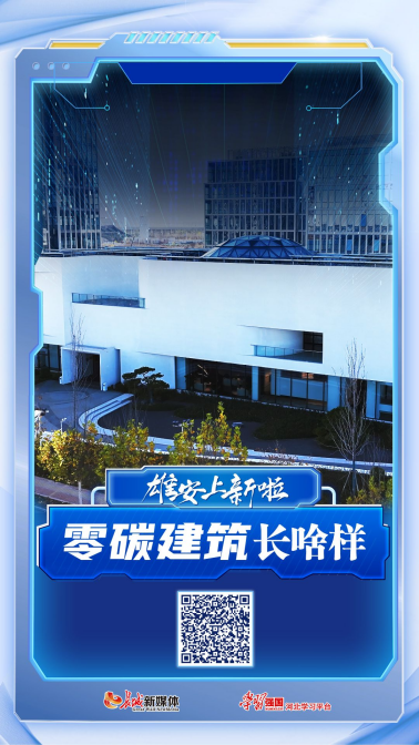 这栋大楼就是雄安自贸试验区交流展示中心,它外形素雅大方,充满艺术气息,远远望去,格外吸睛。大楼在科技的加持下,利用太阳能和地热能,实现了零碳排放,让室内的温度常年恒定在20至26摄氏度,达到四季如春的效果,是“官方认证”的雄安新区首批零碳示范建筑之一。