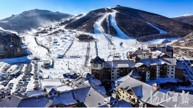 12月14日,无人机航拍张家口市崇礼区太舞滑雪场。