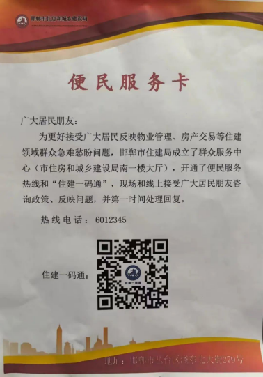 邯郸市在全省率先推出“住建一码通”