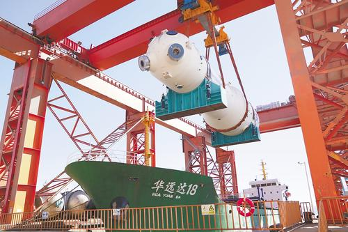 10月19日,哈电集团(秦皇岛)重型装备有限公司生产的一台 “华龙一号”核电机组蒸汽发生器装船发运。