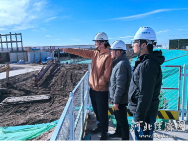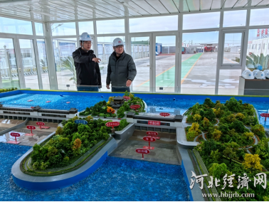 雄安新区枣林庄枢纽改扩建工程项目负责人与施工方负责人在察看项目。