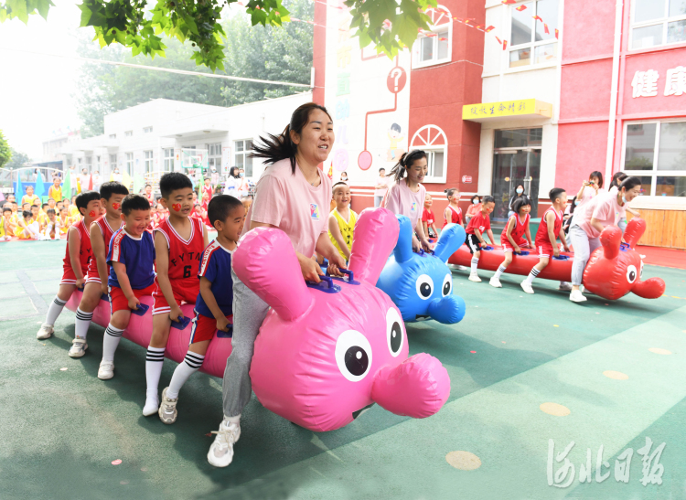2021年5月31日,河北省石家庄新乐市直幼儿园的小朋友和老师一起参加趣味运动会。通讯员 贾敏杰 摄影报道