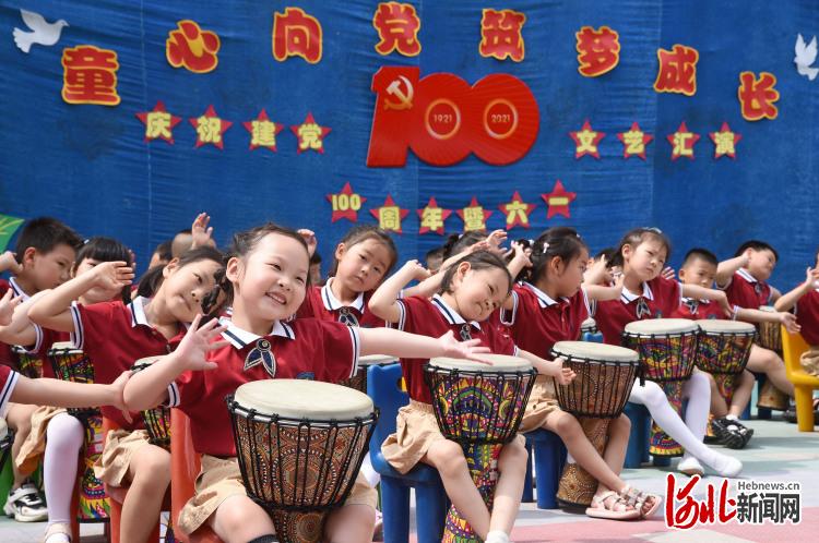 2021年5月31日,河北省邯郸市峰峰矿区春光小学幼儿园的小朋友在表演文艺节目。2021年5月31日,河北省邯郸市峰峰矿区春光小学幼儿园举行“童心向党·筑梦成长”庆祝建党100周年暨“六一”儿童节文艺汇演。 通讯员 郝群英 摄影报道