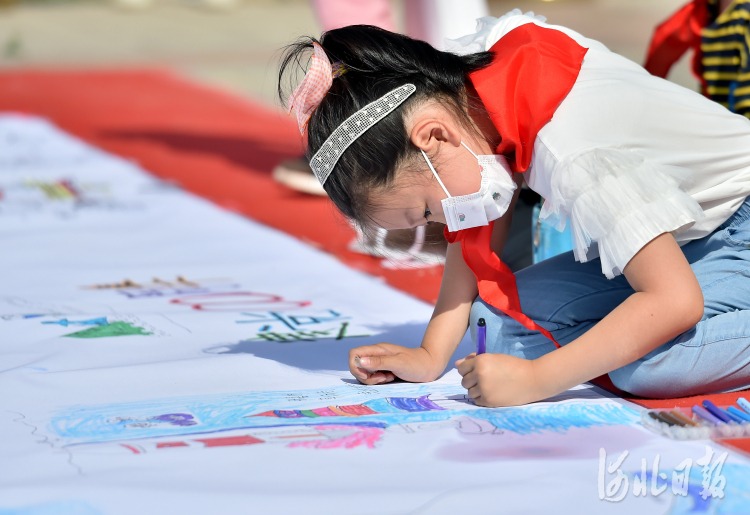 2021年5月29日,“童心永向党 共绘中国梦”献礼建党100周年——石家庄第九届“六一”百米长卷儿童绘画活动在河北省石家庄市解放广场举行。通讯员 张晓峰 摄影报道