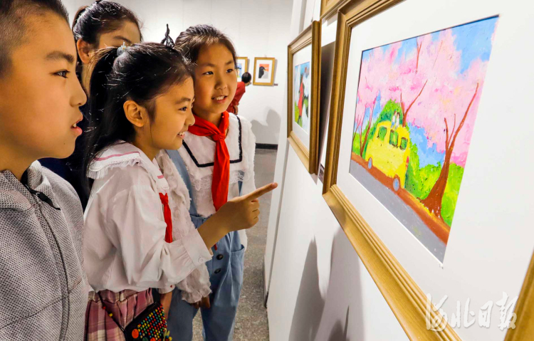 2021年5月29日,孩子们在参观由河北省遵化市文联、共青团等部门联合举办的“迎六一”少年儿童绘画作品展。通讯员 刘满仓 摄影报道