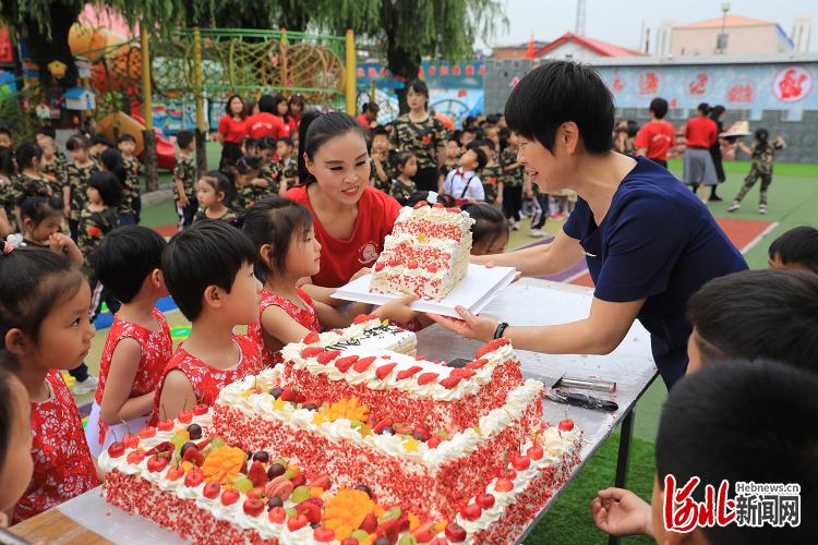2021年5月31日,河北省迁西县第一幼儿园教师为学生制作节日蛋糕。通讯员 王爱军 摄影报道