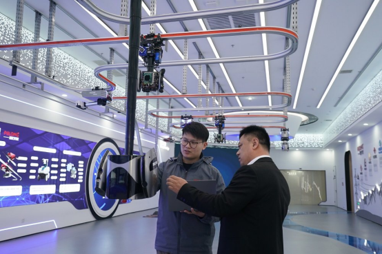 在雄安新区科创中心中试基地,北京普龙科技有限公司工作人员在调试巡检机器人。