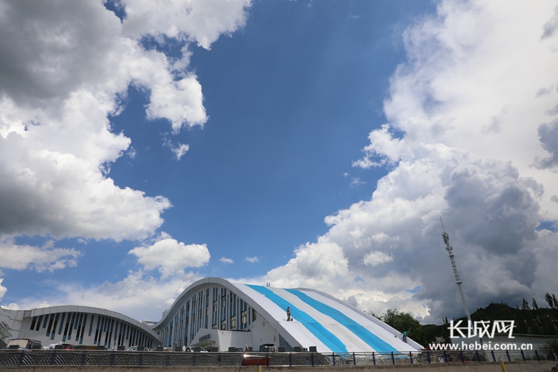 以玉为图,以碧为底,崇礼奥运核心区沿线绿化及环境整治工程已初见成效。蓝天白云下,一片片山花烂漫,一幅幅夏日青葱,绿化景观配合中国风的场馆群,展现了整洁有序、绿色优美的赛区环境。