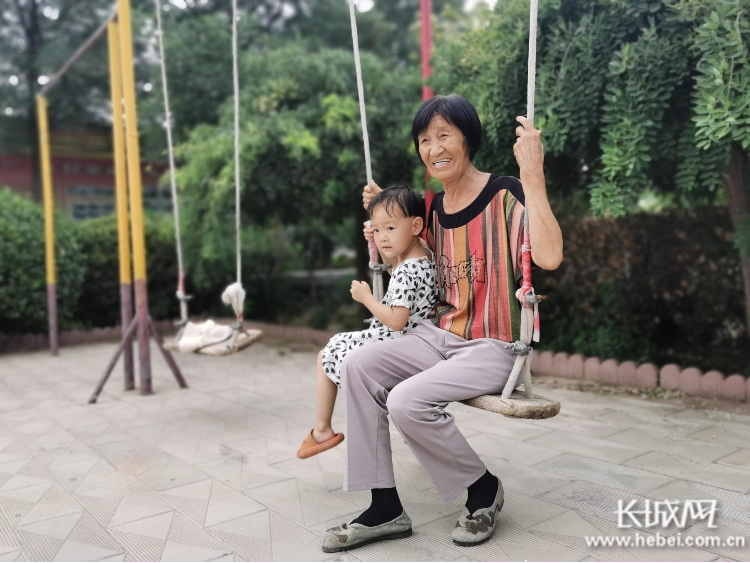 王幻运带着孩子在休闲广场上玩耍。长城网记者 郭庆敏 摄