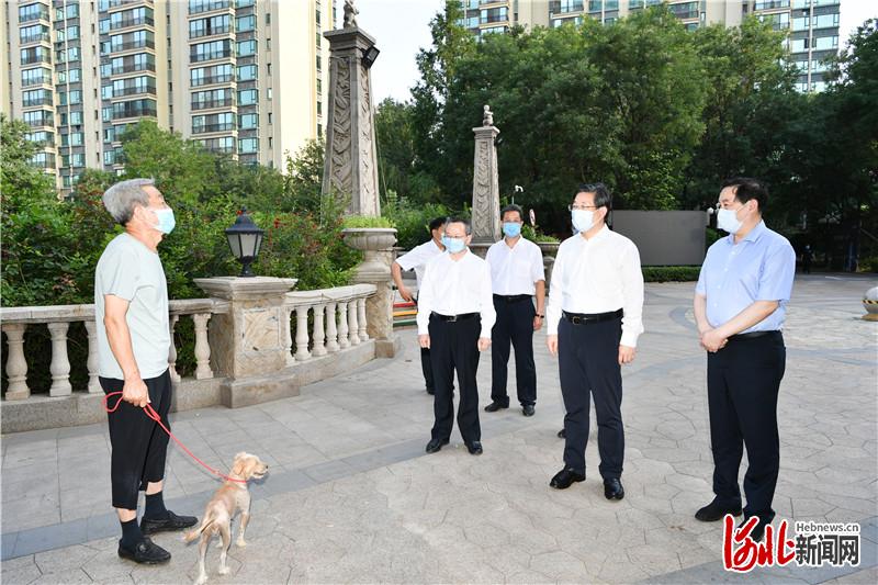 8月4日下午,省委书记、省人大常委会主任王东峰在石家庄市暗访检查。这是王东峰在恒大城社区,实地检查社区常态化疫情防控措施落实情况。 河北日报记者 赵威 摄