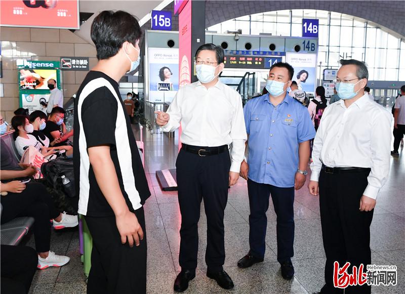 8月4日下午,省委书记、省人大常委会主任王东峰在石家庄市暗访检查。这是王东峰在石家庄火车站,详细察看疫情防控情况,随机与候车旅客交流。 河北日报记者 赵威 摄