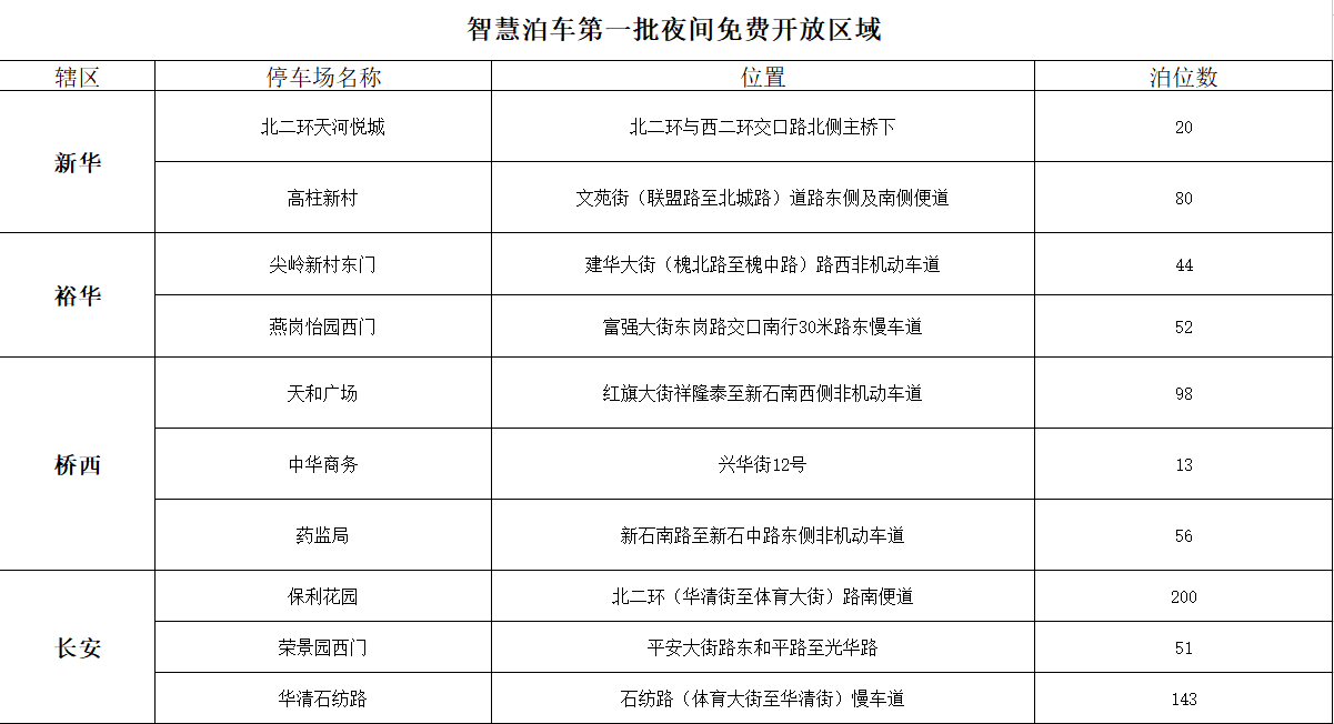 首批夜间免费的停车场,能够为广大市民提供近800个停车位。这些免费车场对外开放,是市委、市政府大力提倡和推动的一项惠民措施,既需要智慧泊车等企业的广泛参与,也需要广大市民的积极配合。在此提醒广大市民,入场停车时,要严格遵守交通法规关于停车的管理规定,有序停车、规范停车,服从停车场管理人员的指挥,按时停放、提前驶离,以方便更多市民选择停放。