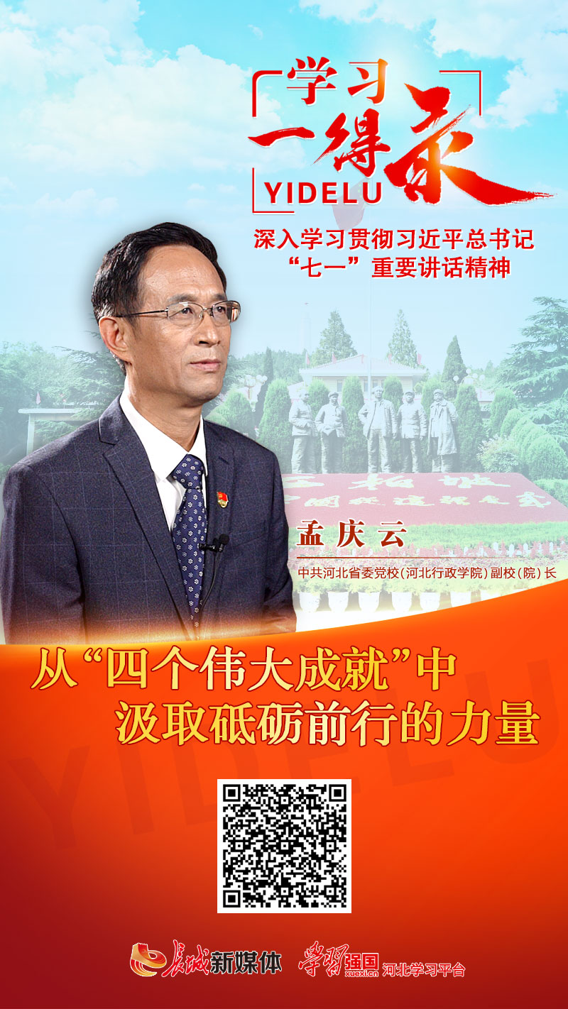 在庆祝中国共产党成立100周年大会上,习近平总书记高度概括和评价了一百年来中国共产党团结带领中国人民创造的“四个伟大成就”。从“四个伟大成就”中,可以清楚地看到,中国共产党团结带领中国人民克服一切艰难险阻,为中华民族作出了伟大的历史贡献。在奋力实现第二个百年奋斗目标的新征程上,我们要从“四个伟大成就”中汲取前进的力量,创造新的伟大荣光。本期“学习‘一得录’”邀请到了中共河北省委党校(河北行政学院)副校(院)长孟庆云教授,围绕三方面解读“四个伟大成就”的精神密码,从“四个伟大成就”看历史和人民为什么选择了中国共产党。