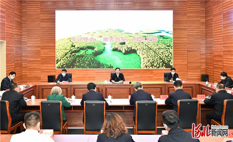 调研检查中,王东峰主持召开座谈会,认真听取围场满族蒙古族自治县、塞罕坝机械林场主要负责同志和塞罕坝三代务林人代表发言,向大家作习近平总书记“七一”重要讲话和党史学习教育专题宣讲。 河北日报记者赵威摄