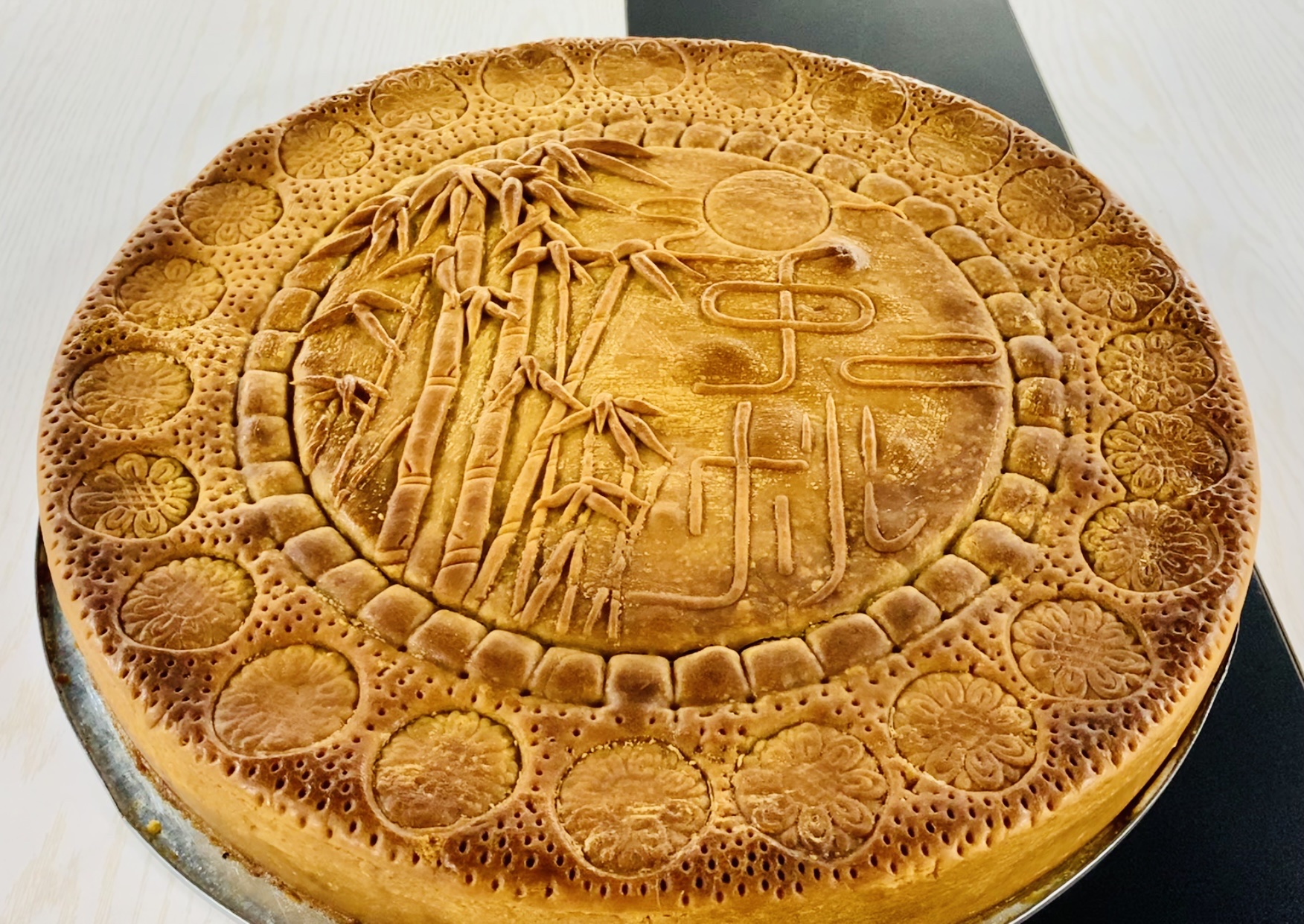 直径60厘米团圆大月饼 独居老人一起切