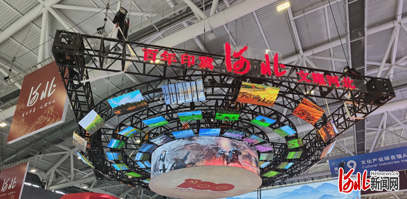 河北展区以“百年印冀 文耀河北”为主题,分为红色燕赵、激情冬奥、文旅融合、领军企业、匠心传承五个版块,整体造型以“雪如意”“西柏坡”“雄安容和塔”等河北特色符号作为展区设计元素,全面展示了河北文化建设成就,突出河北建党百年的文化成果。
