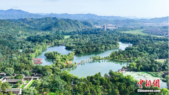 避暑山庄不同于其它的皇家园林,它继承和发展了中国古典园林“以人为之美入自然,符合自然而又超越自然”的传统造园思想,按照地形地貌特征进行选址和总体设计,完全借助于自然地势,因山就水,顺其自然。图为游客夏日在承德避暑山庄内游览。