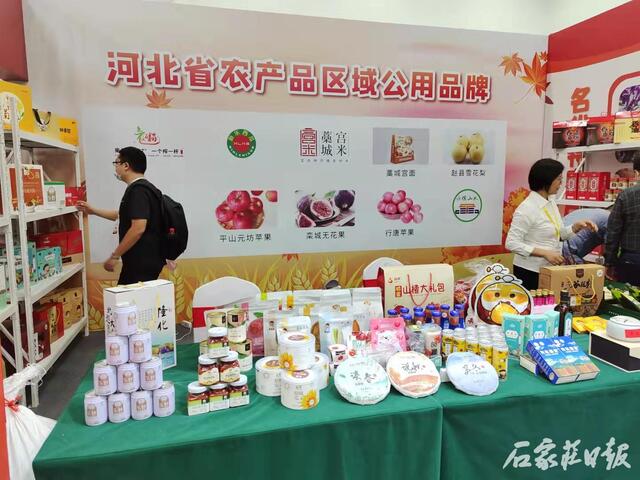 在启动仪式主会场两侧展板上,以图文并茂的形式,从推进农业高质量发展、打造放心生产基地,加快农业结构调整、建设精品现代农业园区等方面对石家庄市农业农村发展成果进行了充分展示。在“金秋消费季、丰收成果展”展厅,不仅设立了石家庄市特色农产品综合展台,还分设17个农村县(市、区)县域特色农产品展区,吸引了来自全市各县(市、区)的农业产业化龙头企业、农业园区和农民合作社参展。展出的产品既有藁城宫面、元氏石榴、行唐大枣、晋州鸭梨、赞皇蜂蜜等石家庄市传统国家地理标志农产品,也有彩色土豆、芽球玉兰等新特农产品,更有“双鸽”肉食加工、“谷言”牛肉套皮、“同福”系列营养粥等来自双鸽、惠康、同福等农业产业化国家重点龙头企业的农业深加工产品,中国驰名商标产品、区域公用品牌产品等也争相亮相。