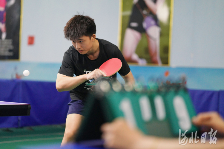 2021年9月26日,参赛选手在河北省第二十届中学生运动会上进行乒乓球项目的比赛。
