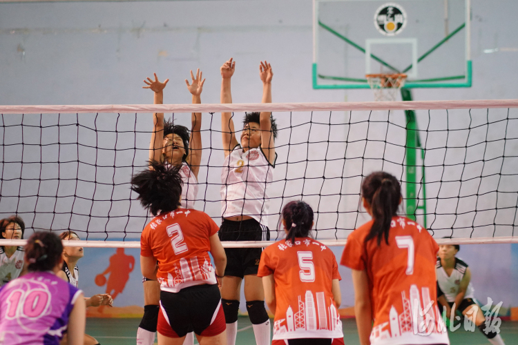 2021年9月26日,参赛选手在河北省第二十届中学生运动会上进行排球项目的比赛。