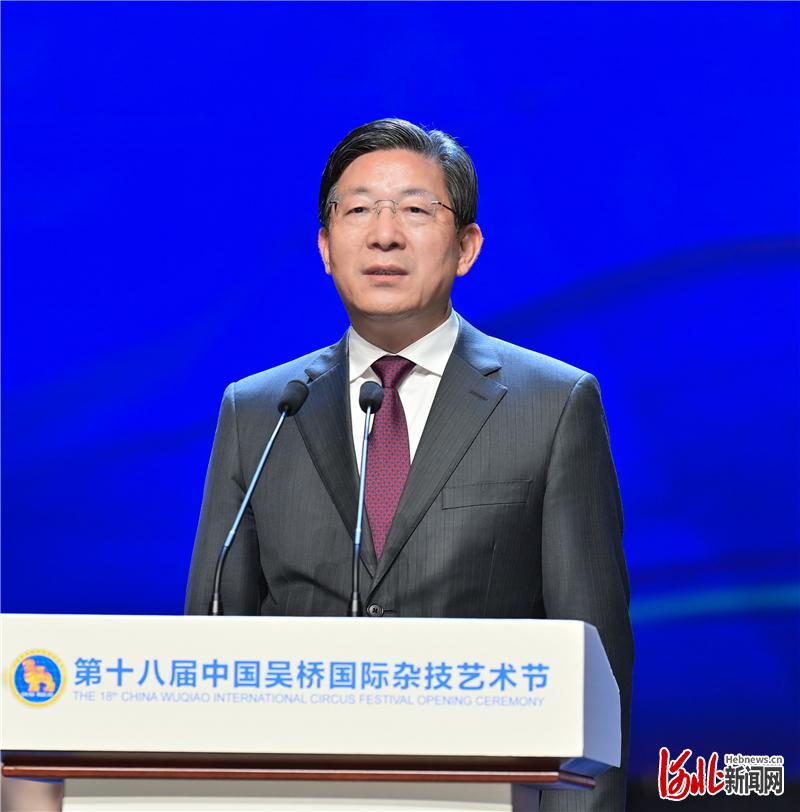 张旭代表文化和旅游部对本届杂技艺术节开幕表示祝贺。他说,河北吴桥是中国著名的杂技之乡,中国吴桥国际杂技艺术节是我国举办历史最长、影响力最大的国际杂技艺术赛事,也是我国优秀的对外文化交流品牌,为推动我国杂技艺术繁荣与发展贡献了力量。希望吴桥杂技艺术节再接再厉,面向未来、创新开拓,为河北的文化建设和对外交往添砖加瓦,为国家对外文化交流合作作出更大贡献。