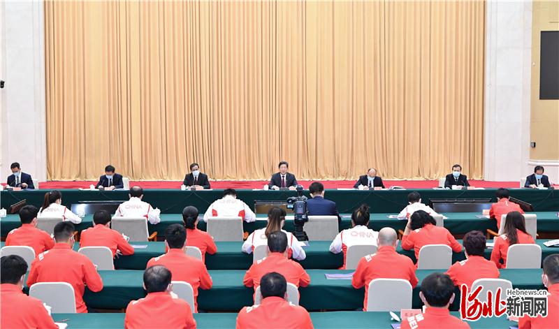 王东峰强调,要坚持自觉弘扬中华体育精神,凝心聚力加快建设经济强省、美丽河北。全省上下要以体育健儿为榜样,坚持把弘扬奥林匹克精神、中华体育精神与推动各项工作紧密结合起来,深入开展党史学习教育和“四史”宣传教育,大力实施“三重四创五优化”活动和“三基”建设年活动,举全省之力办好“三件大事”,持续巩固三大攻坚战成果,加快新型城镇化建设,全面推进乡村振兴,推动创新发展绿色发展高质量发展,全面完成全年经济社会发展目标任务,加快建设经济强省、美丽河北,为全面建成社会主义现代化强国和实现中华民族伟大复兴的中国梦作出新贡献。