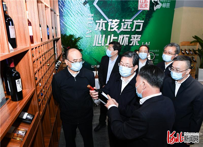 10月2日,省委书记、省人大常委会主任王东峰在张家口市宣化区和怀来县调研检查。省委副书记、省长许勤参加调研检查。这是王东峰、许勤在怀来葡萄酒交易中心葡萄酒商街,详细了解怀来县葡萄酒产业发展情况。河北日报记者赵威摄